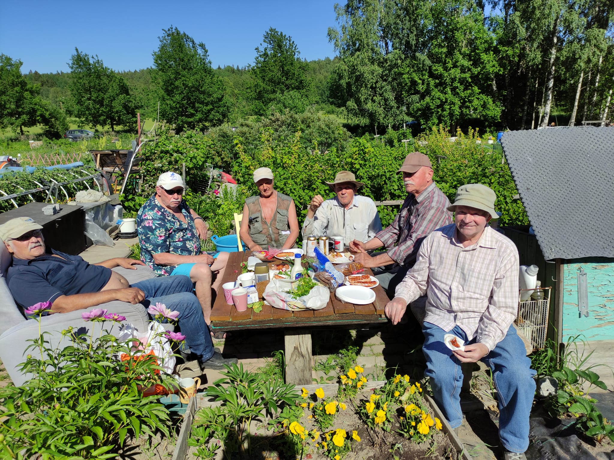 Как чудесно совмещают отдых и работу наша мужская группа. Очередная встреча в четверг мужской группы. У Валеры Пеек на огороде. Рядом огород Виктора Порвал. Но основная деятельность проходила на участке Валеры. Установили кормушку для птиц, погрилили колбасу и мясо, кипятили воду для чая (кофе). Послушали рецепт изготовления чая из Иван-чай. Поговорили о разном.